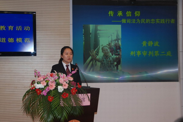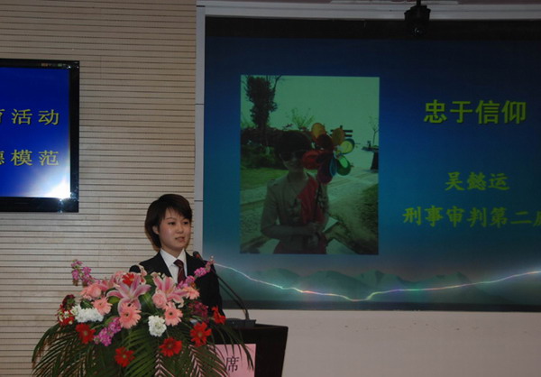 参赛选手紧扣法院公务员职业道德建设这条主线,从不同的切入点诠释了对法院公务员职业道德的理解,以饱满的热情、真挚的语言,讲述了身边创先争优的故事,抒发了恪尽职守、倾情奉献的爱岗敬业精神。选手们精彩的演讲赢得了观众阵阵掌声,使大家深受教育和启发。比赛设一等奖1名,二等奖2名,三等奖3名。经过激烈角逐,行政审判庭助理审判员鲍蕊获得比赛一等奖。
