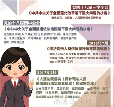 党的十八届三中、四中全会都对保护司法人员依法履行法定职责作出部署,列为重点改革任务。特别是2016年7月,中共中央办公厅、国务院办公厅正式印发《保护司法人员依法履行法定职责规定》(以下简称《规定》)。今年2月7日,最高人民法院发布《人民法院落实〈保护司法人员依法履行法定职责规定〉的实施办法》(以下简称《办法》),内容涉及免受干预、免责机制、救济渠道、公正考核、安全保障、休假权利、薪酬保障等。