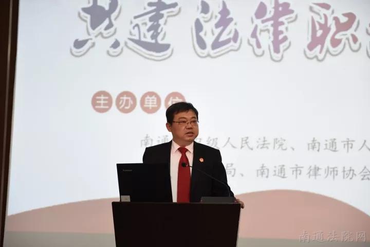11月9日下午,由南通市中级法院青工委牵头,会同市检察院、市司法局、市律师协会联合举办法律职业共同体青年论坛,本次青年论坛的主题为“学习贯彻十九大精神共建法律职业共同体”。市中院党组书记、院长曹忠明,市检察院党组书记、检察长俞昕水,市司法局党组书记、局长缪平,市律师协会会长顾迎斌应邀参加本次论坛,来自市中院、市检察院、市司法局、团市委部分领导和中层负责人,及40周岁以下青年干警近200余人参加论坛。