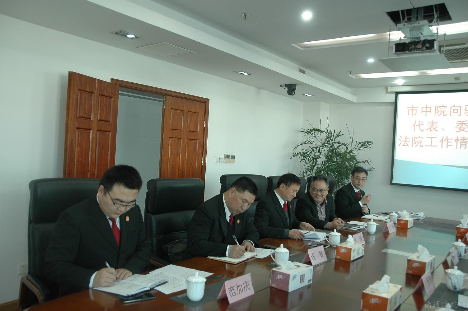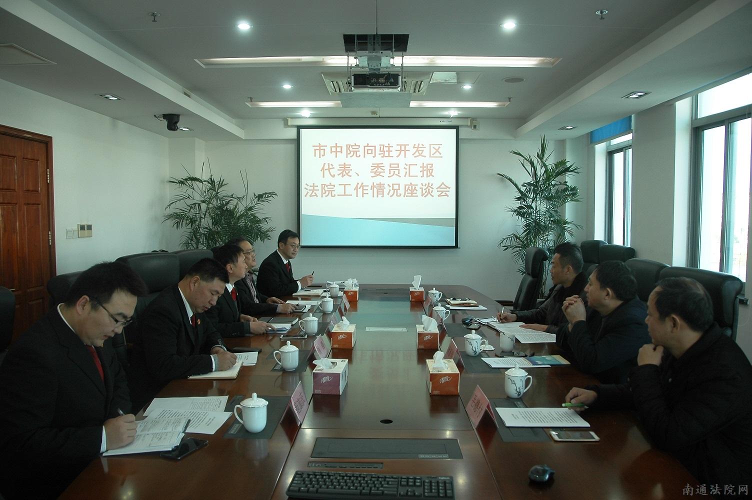 12月12日,驻开发区法院市人大代表、市政协委员代表徐新民、江卫、葛明齐、毛德付莅临开发区法院,市中院党组成员、审委会专委张骥、开发区法院党组书记、院长王平分别向代表委员汇报了法院2017年工作基本情况。市中院执行局局长钱锋、我院党组成员、纪检组长周修俊参加了座谈会。代表委员仔细阅览、听取了市中院和开发区法院的工作汇报,并提出了建议。