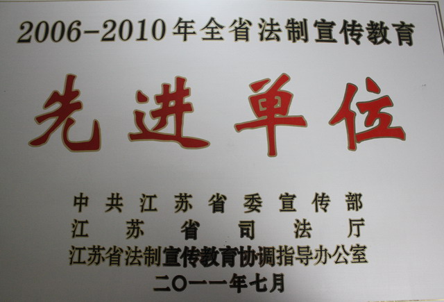 2011年,启东法院获评“2006——2010年全省法制宣传教育先进单位”