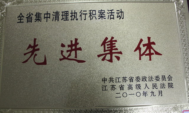2010年,启东法院荣获“全省集中清理执行积案工作先进集体”
