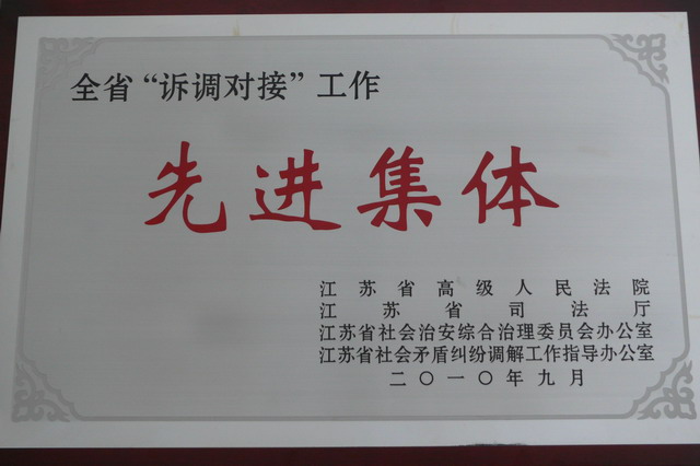 2010年,通州区法院被表彰为“全省诉调对接工作先进集体”