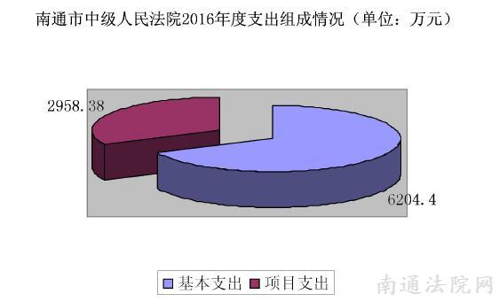 南通市中级人民法院2016 年度财政拨款基本支出6204.40 万元,其中: